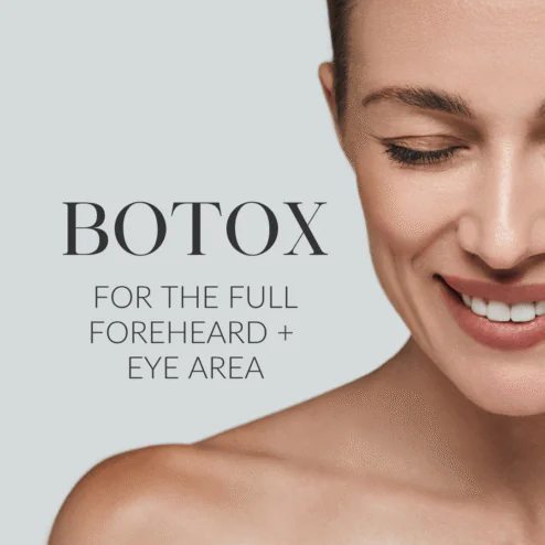 This offer includes Botox injections to smooth crow’s feet around the eyes as well as the entire forehead area. Treatment in the forehead area effectively targets both horizontal wrinkles and the frown lines between the eyebrows.