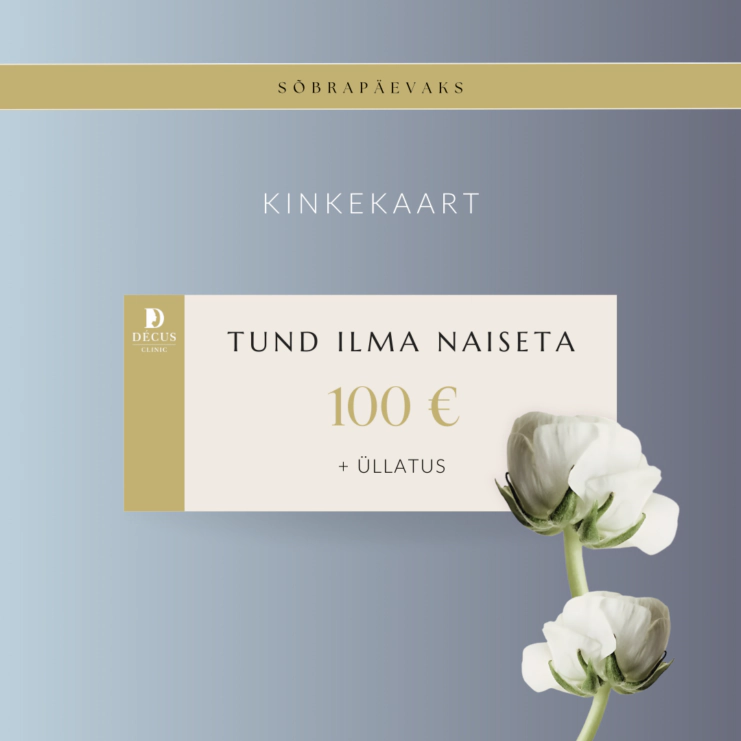 Kinkekaart sisaldab 100 € väärtuses Decuse teenuseid – lõõgastavat, just meestele mõeldud näohooldust või soovi korral mõnda teist huvipakkuvat protseduuri.